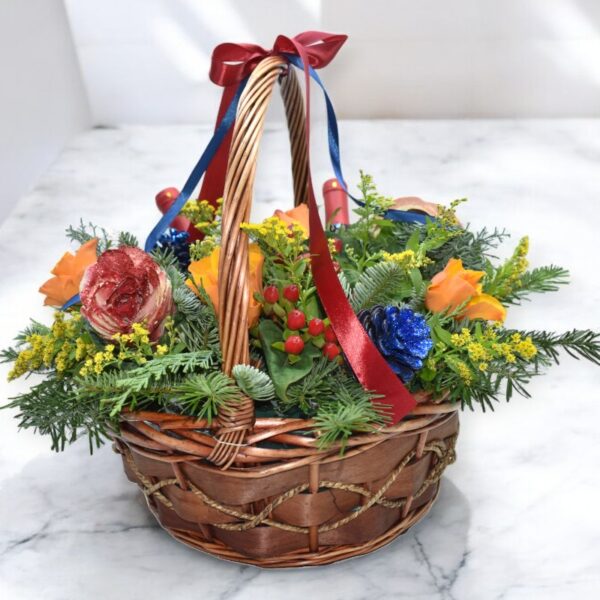 Γιορτινό καλάθι με κρασιά