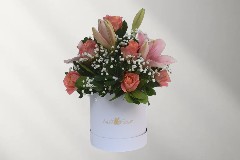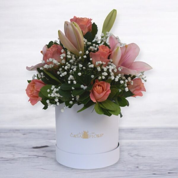 Ροζ ρομαντική σύνθεση σε λευκό κύλινδρο
