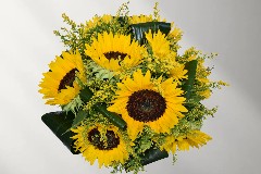 Μπουκέτο με οριεντάλ, ζέρμπερα και τριαντάφυλλο.