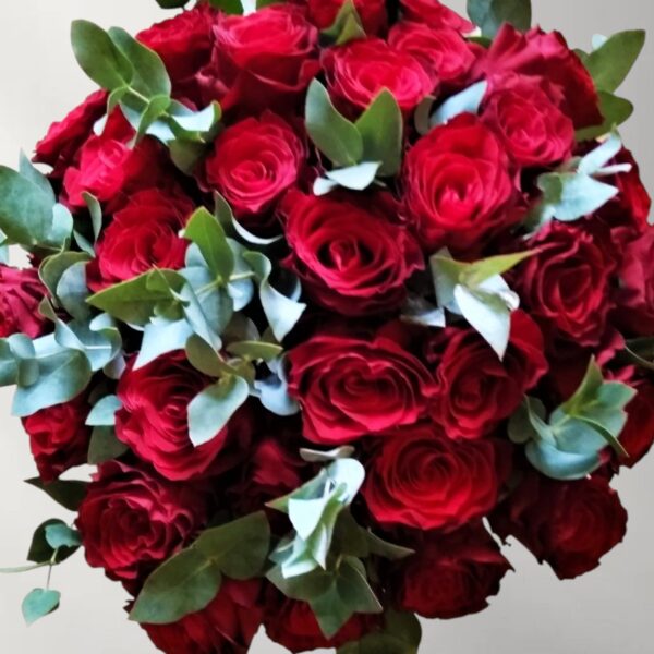 Μπουκέτο με 30 κόκκινα τριαντάφυλλα και κλαδιά ευκαλύπτου
