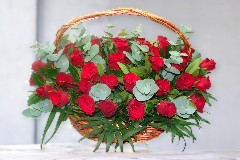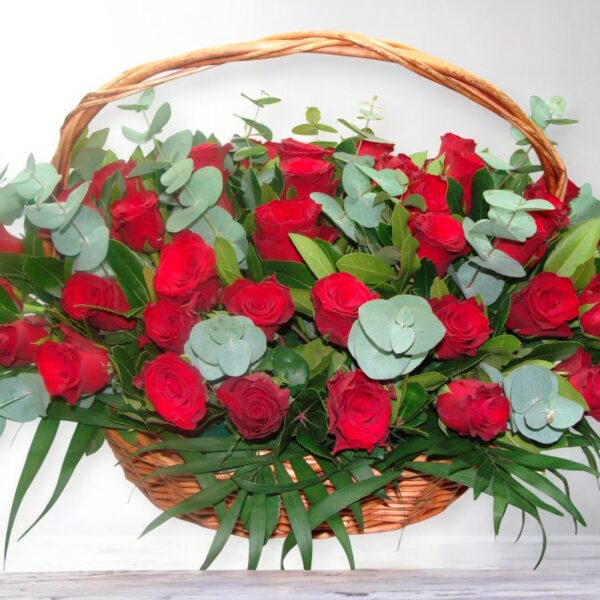 Kαλάθι γεμάτο κόκκινα τριαντάφυλλα.